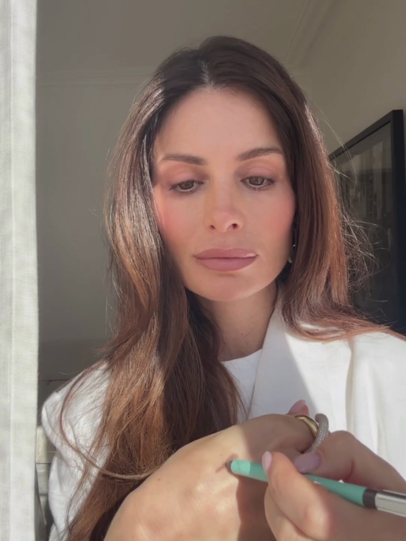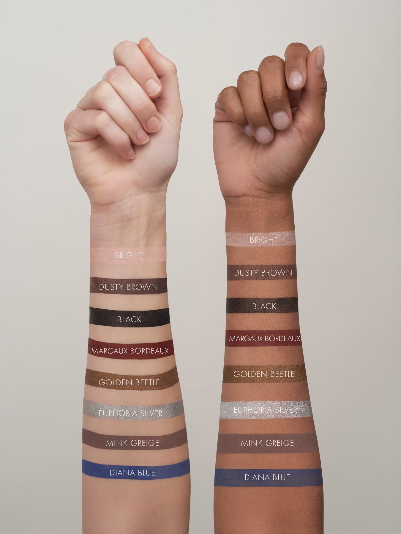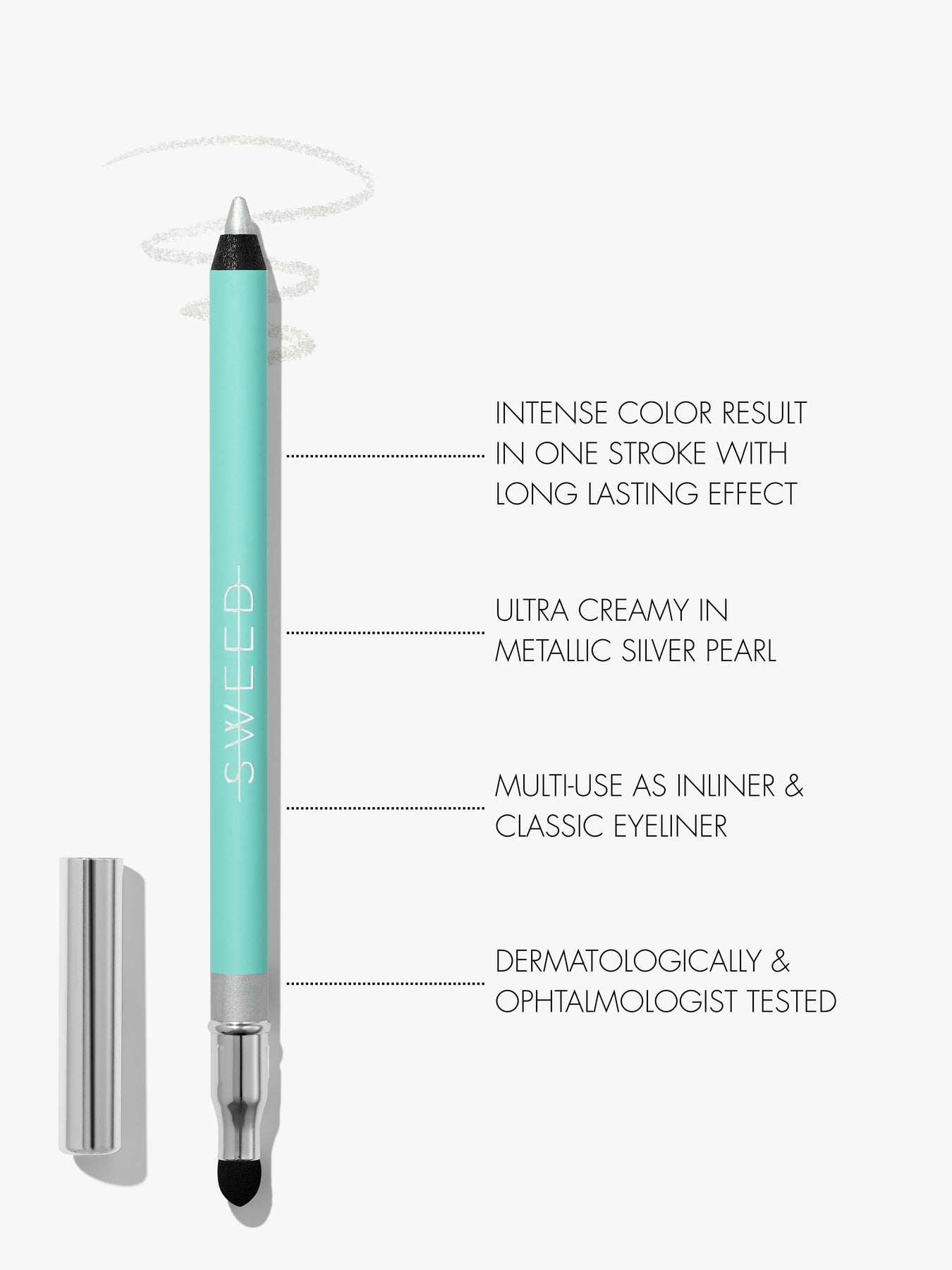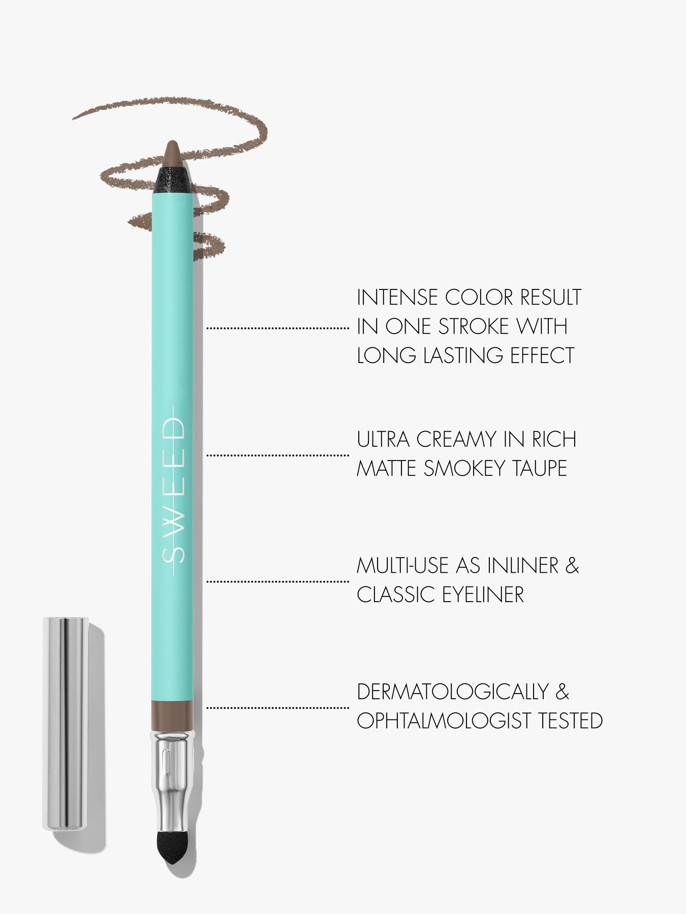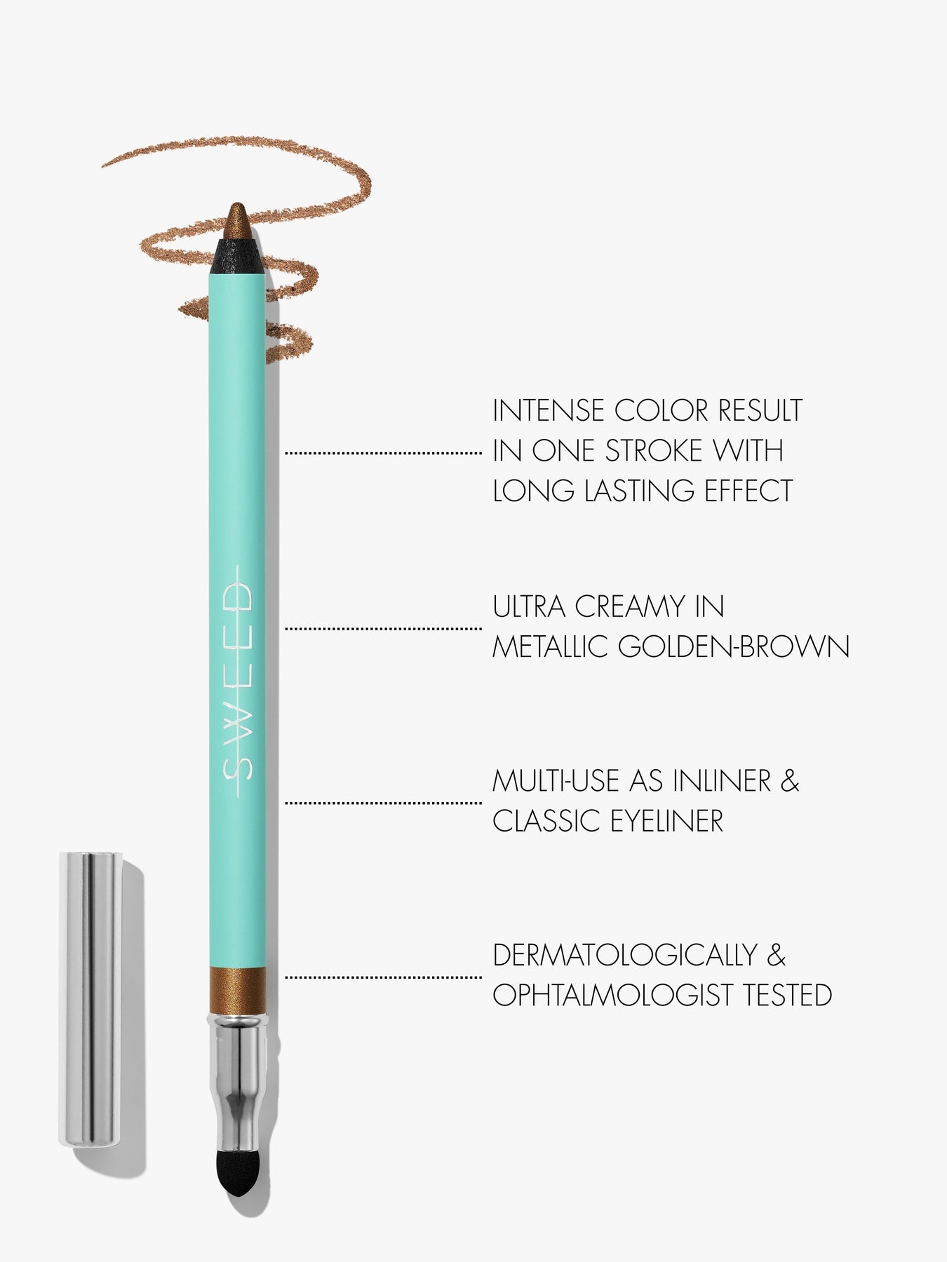 We highly recommend shade Mink Greige or Golden Beetle for a soft smokey look. For a more intense and playful look we recommend to try Diana Blue. We also offer a built-in sponge on the top of the eyeliner to blend with.
