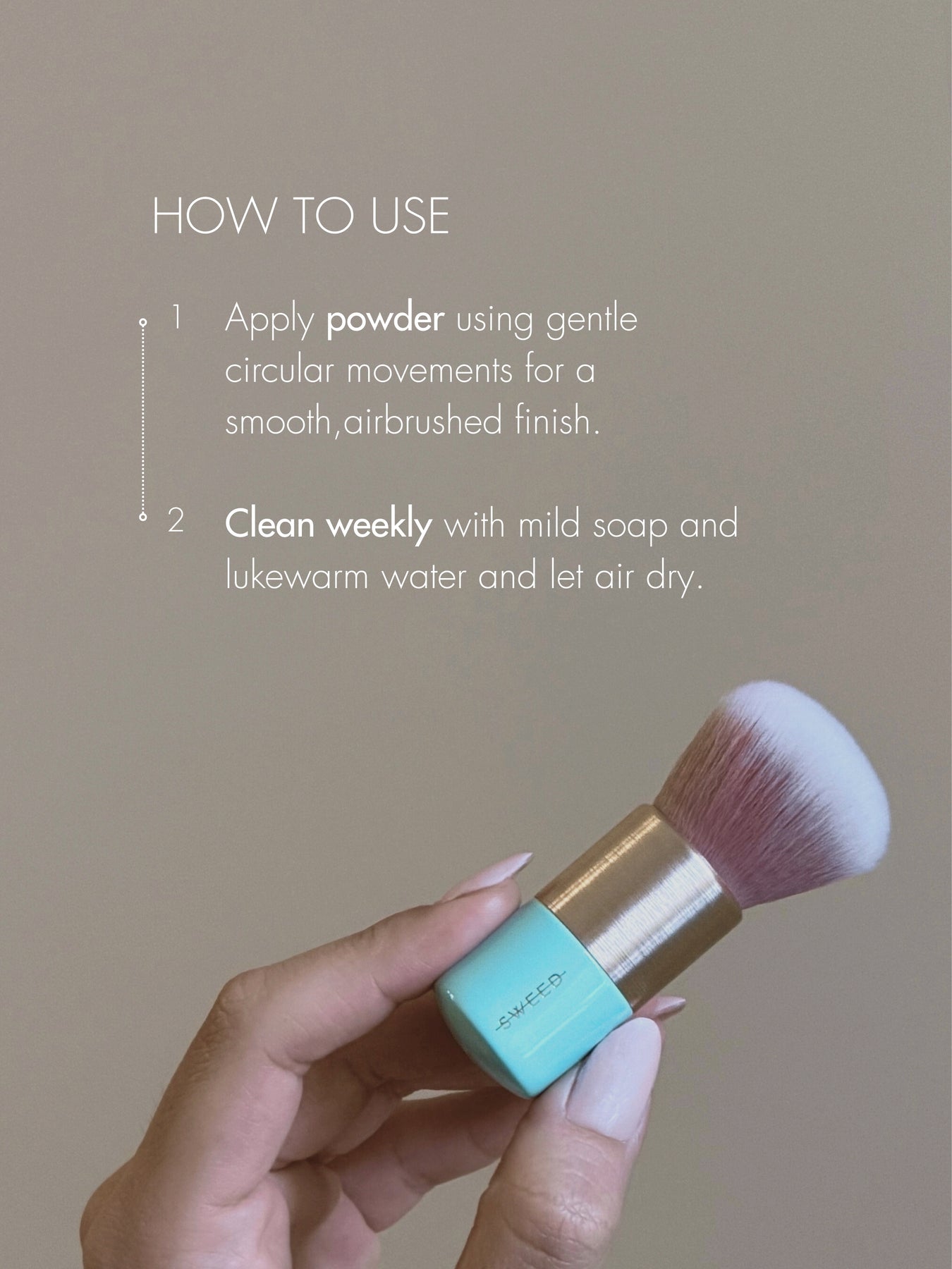 Apply powder using gentle circular movements for a smooth, airbrushed finish.