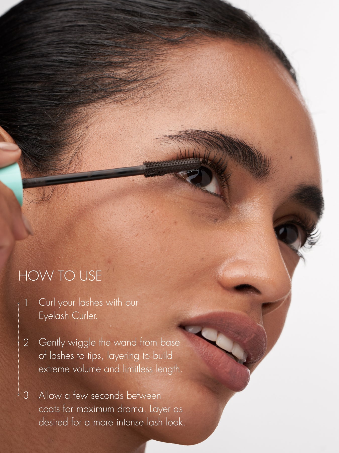 02 Gently wiggle the wand from base of lashes to tips, layering to build extreme volume and limitless length.